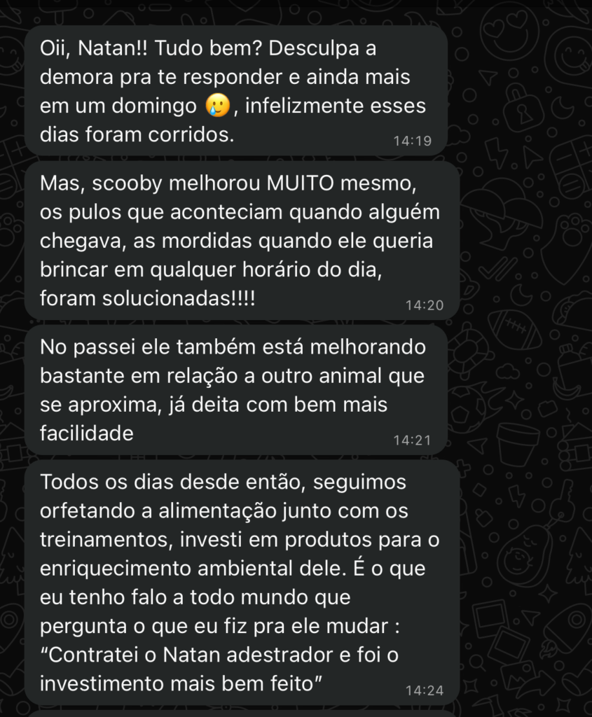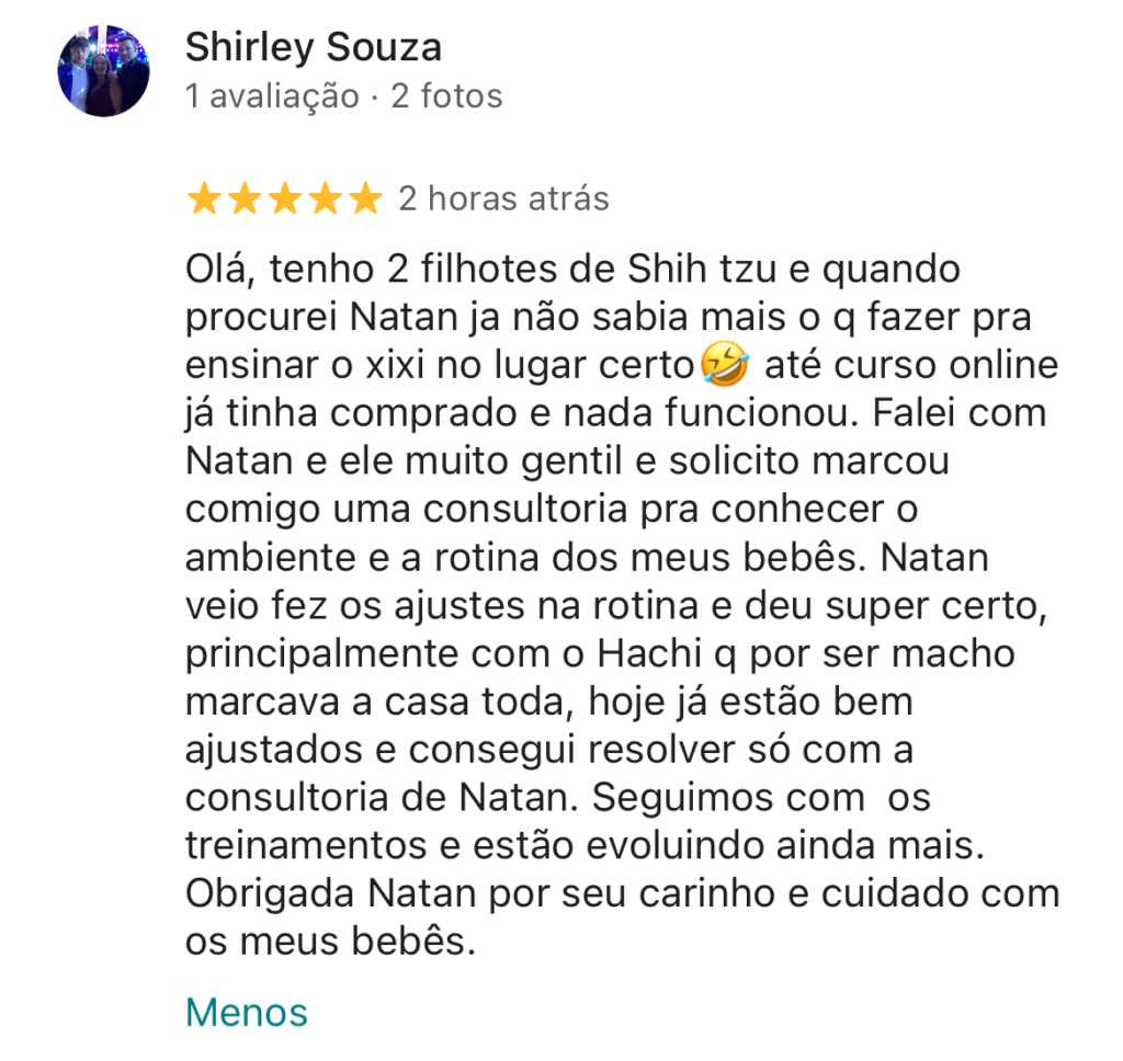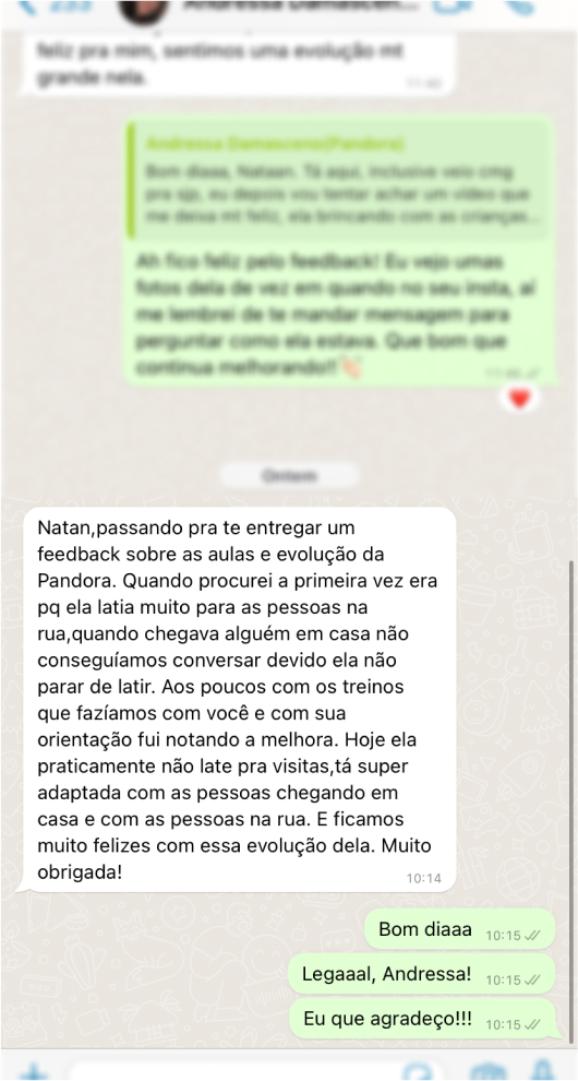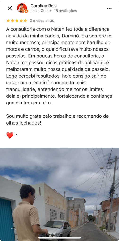 Nos últimos anos, já atendi dezenas de famílias, transformando rotinas e trazendo equilíbrio para cada uma delas. Agora, atuo em Petrolina e Juazeiro, ajudando tutores a alcançarem resultados duradouros e uma convivência mais tranquila com seus cães. Se você deseja melhorar a relação com seu cão, posso te guiar nesse caminho.
