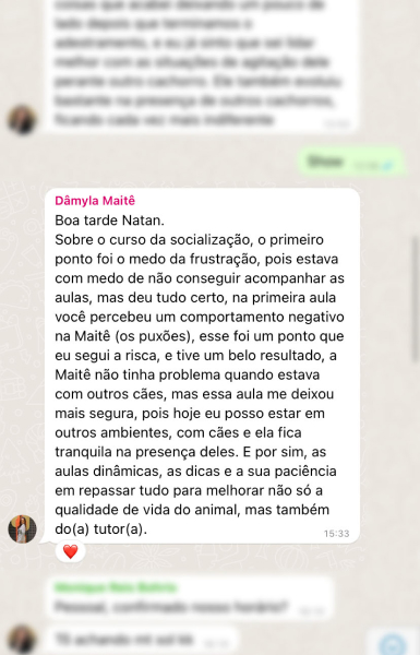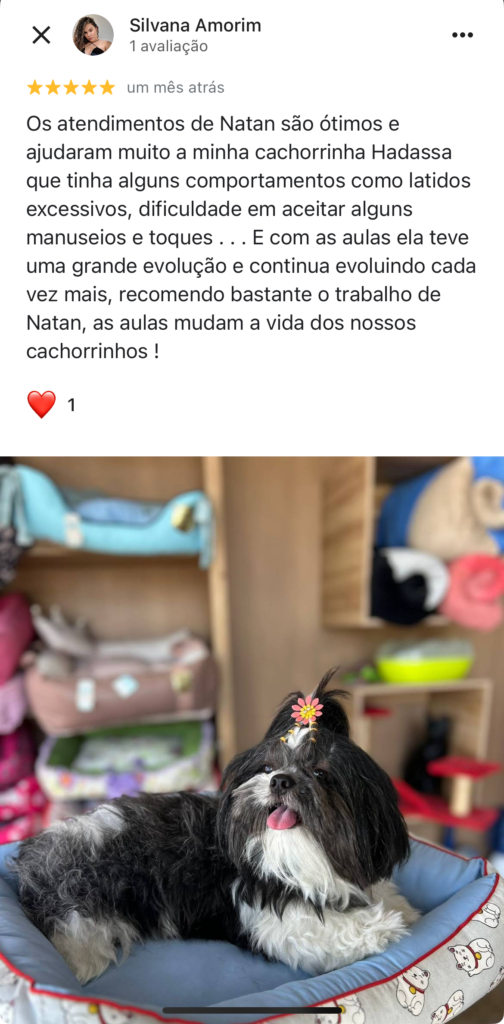 Desde então, venho me especializando por meio de diversas formações e desenvolvi uma abordagem fundamentada na análise do comportamento, neurociência e etologia. Com esse método científico e aprofundado, ajudo cães e tutores a compreenderem melhor o comportamento animal, criando conexões mais fortes e uma convivência harmoniosa.