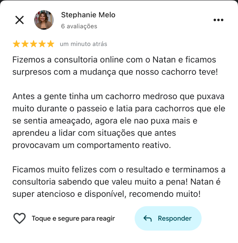 Ajudo tutores como você a resolver problemas de comportamento de maneira eficaz e duradoura, utilizando técnicas científicas que priorizam o bem-estar do seu melhor amigo.