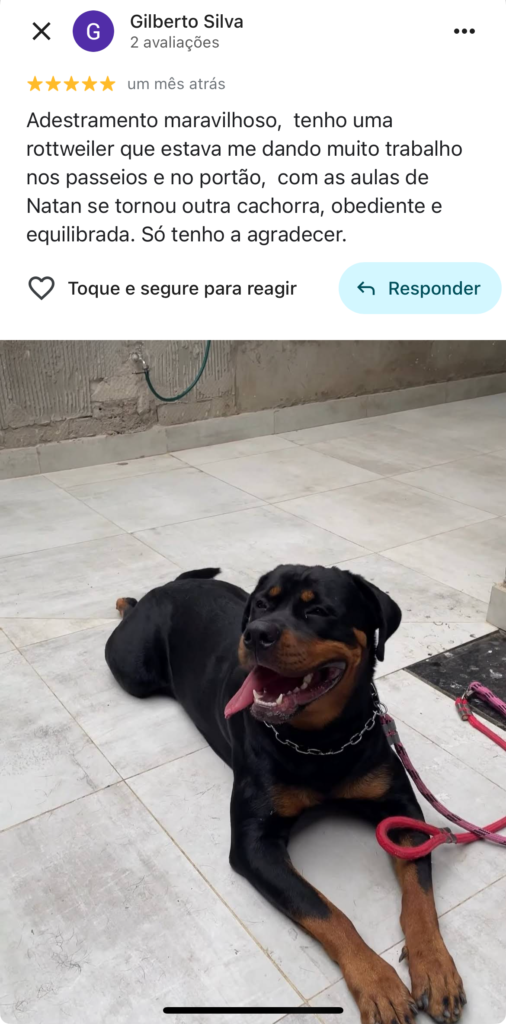 Adestramento intensivo com acompanhamento completo e orientações para você manter os resultados.